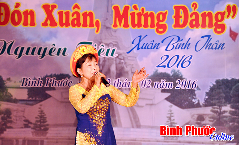 Tiết mục thơ xuân Bình Phước do nghệ sĩ Kiều Thanh ngâm đã giới thiệu người yêu thơ các danh lam thắng cảnh của quê hương Bình Phước