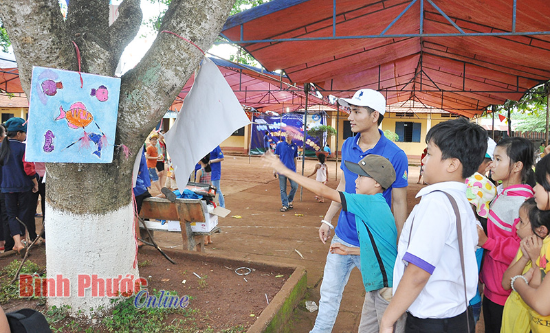 Trò chơi “phi tiêu cổ tích” thu hút đông em nhỏ ở xã Đa Kia tham gia
