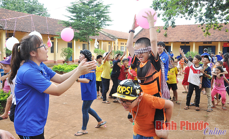 Thiếu nhi xã Đa Kia thích thú với trò chơi nhảy bao bố