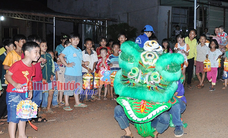 Tối 10-9, sinh viên tình nguyện tổ chức rước đèn trung thu cho các em ở xã Bù Gia Mập