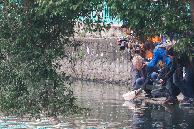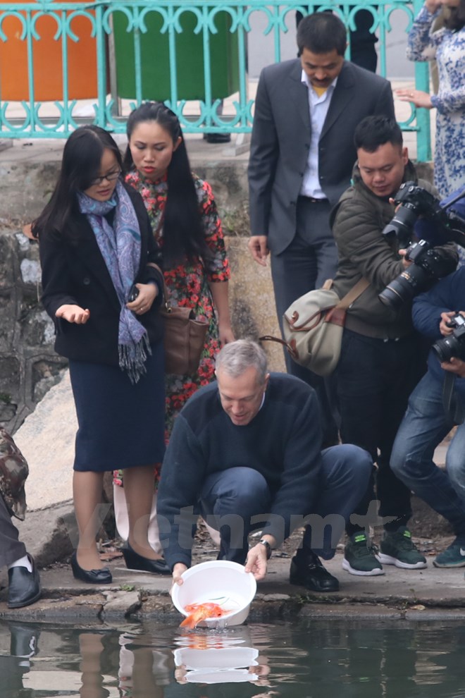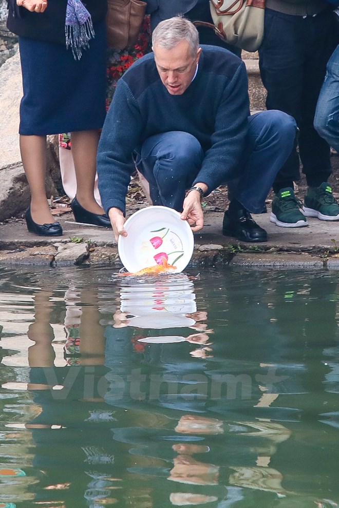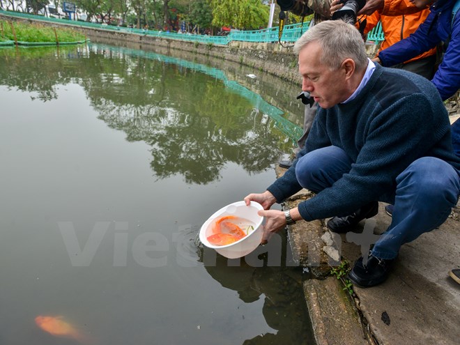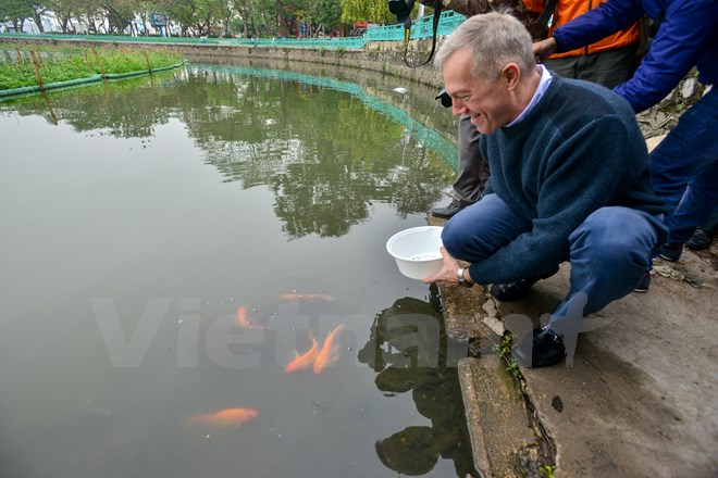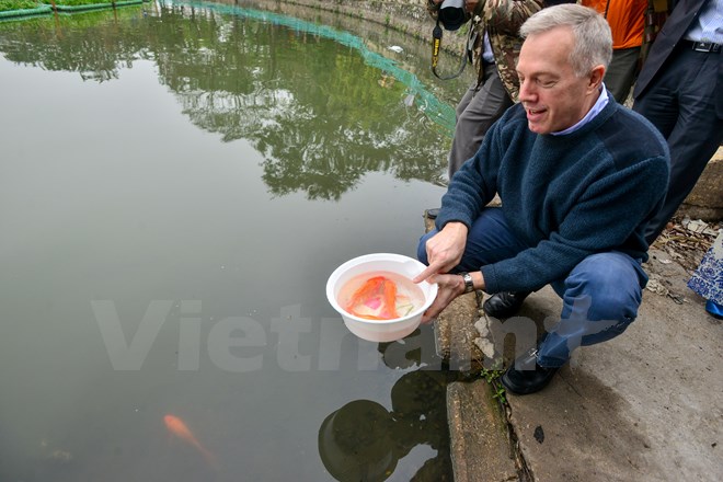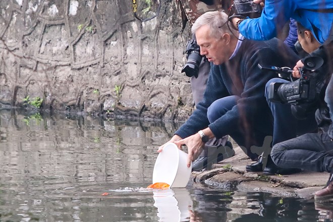 Sáng 17-1, Đại sứ Hoa Kỳ tại Việt Nam Ted Osius đã thực hiện nghi thức tiễn đưa ông Táo về trời bằng việc thả cá chép xuống hồ Tây