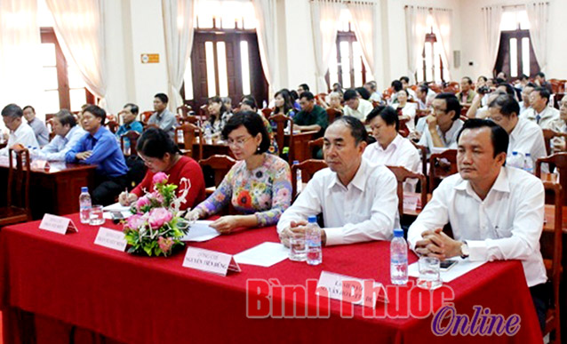 Các đại biểu dự lễ công bố - phát động gải thưởng VHNT tỉnh Bình Phước