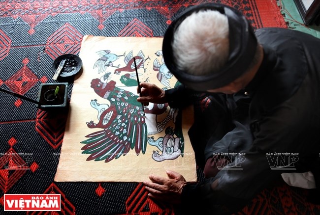 Tranh dân gian Đông Hồ (Thuận Thành, Bắc Ninh) thường được người dân Bắc Bộ dùng trang trí trong nhà mỗi dịp Tết đến Xuân về. Trong ảnh: Nghệ nhân Nguyễn Đăng Chế ở làng tranh Đông Hồ vẽ tranh gà ngày Tết