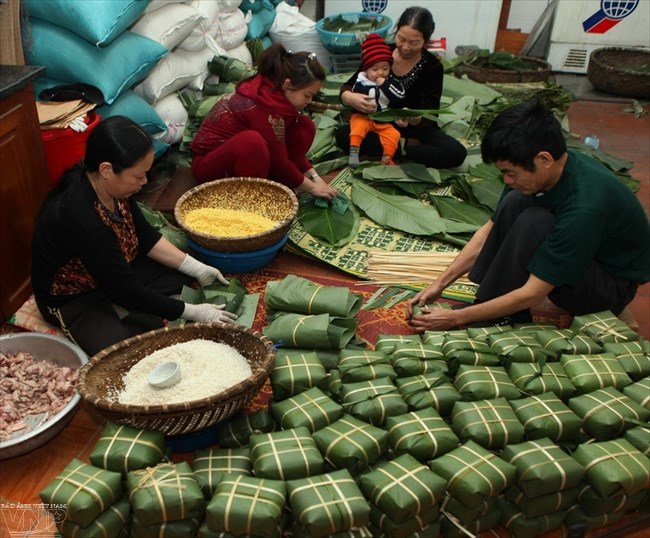 Làng bánh chưng Tranh Khúc (Hà Nội) nhộn nhịp gói bánh vào dịp Tết
