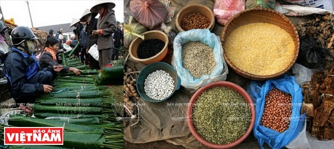 Lá dong, gạo nếp, đậu xanh, măng khô, mộc nhĩ... được bày bán ở một phiên chợ giáp Tết vùng nông thôn Bắc Bộ
