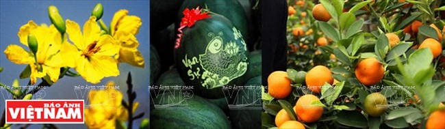 Mai vàng, dưa hấu, quất ... là những sản vật được người Việt ưa thích sử dụng trong những ngày Tết