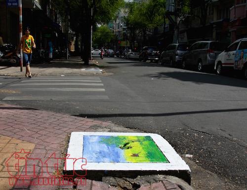 Trên mỗi nắp cống là một bức tranh sinh động có chủ đề gần gũi với thiên nhiên như: hoa lá, cỏ cây… được đôi bàn tay của các bạn sinh viên khoa Mỹ thuật trường Đại học Sài Gòn và các bạn thanh niên Chi đoàn phường 10, quận 5 thực hiện.