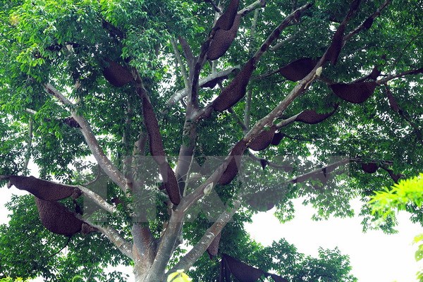Gần như toàn bộ các cành cây đều được ong làm tổ. (Ảnh: Phan Tuấn Anh/TTXVN)