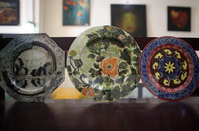 Sản phẩm pháp lam của Công ty trách nhiệm hữu hạn Thái Hưng sản xuất. (Ảnh: Hồ Cầu/TTXVN)