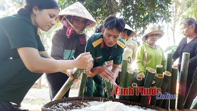 Các chiến sĩ Trung đoàn 717, Binh Đoàn 16 đóng quân trên địa bàn xã cũng có mặt để giúp bà con làm lễ mừng lúa mới.