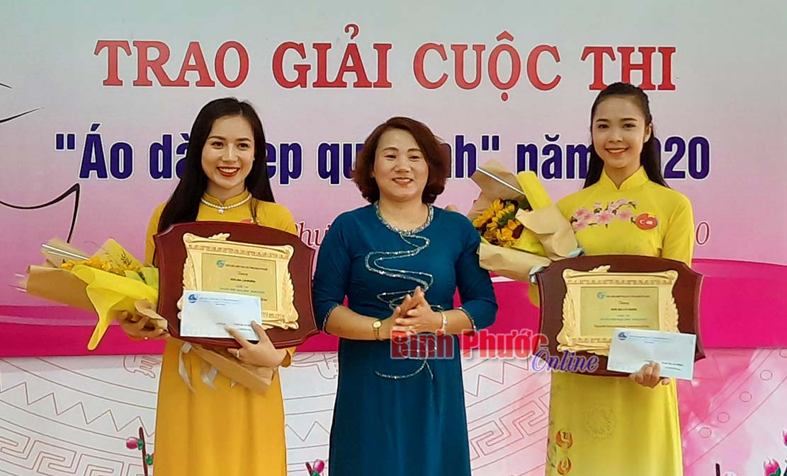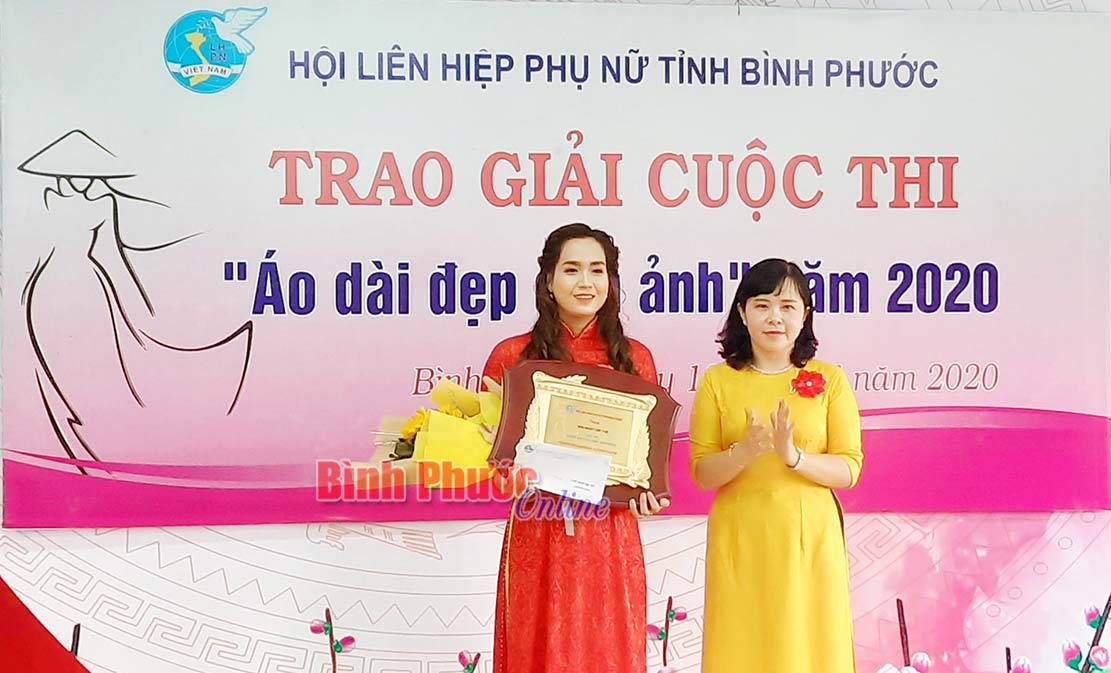 Bà Nguyễn Thị Hương Giang, Chủ tịch Hội Liên hiệp Phụ nữ tỉnh trao giải nhất cá nhân cho thí sinh Trần Thị Như Thủy, số báo danh C30, phường Thác Mơ, thị xã Phước Long đoạt giải nhất cá nhân Cuộc thi “Áo dài đẹp qua ảnh” năm 2020 Ban tổ chức đã trao 9 giải tập thể, 9 giải cá nhân. Ngoài ra, còn trao giải thí sinh dân tộc thiểu số mặc trang phục áo dài đẹp nhất, thí sinh được yêu thích nhất qua mạng xã hội.