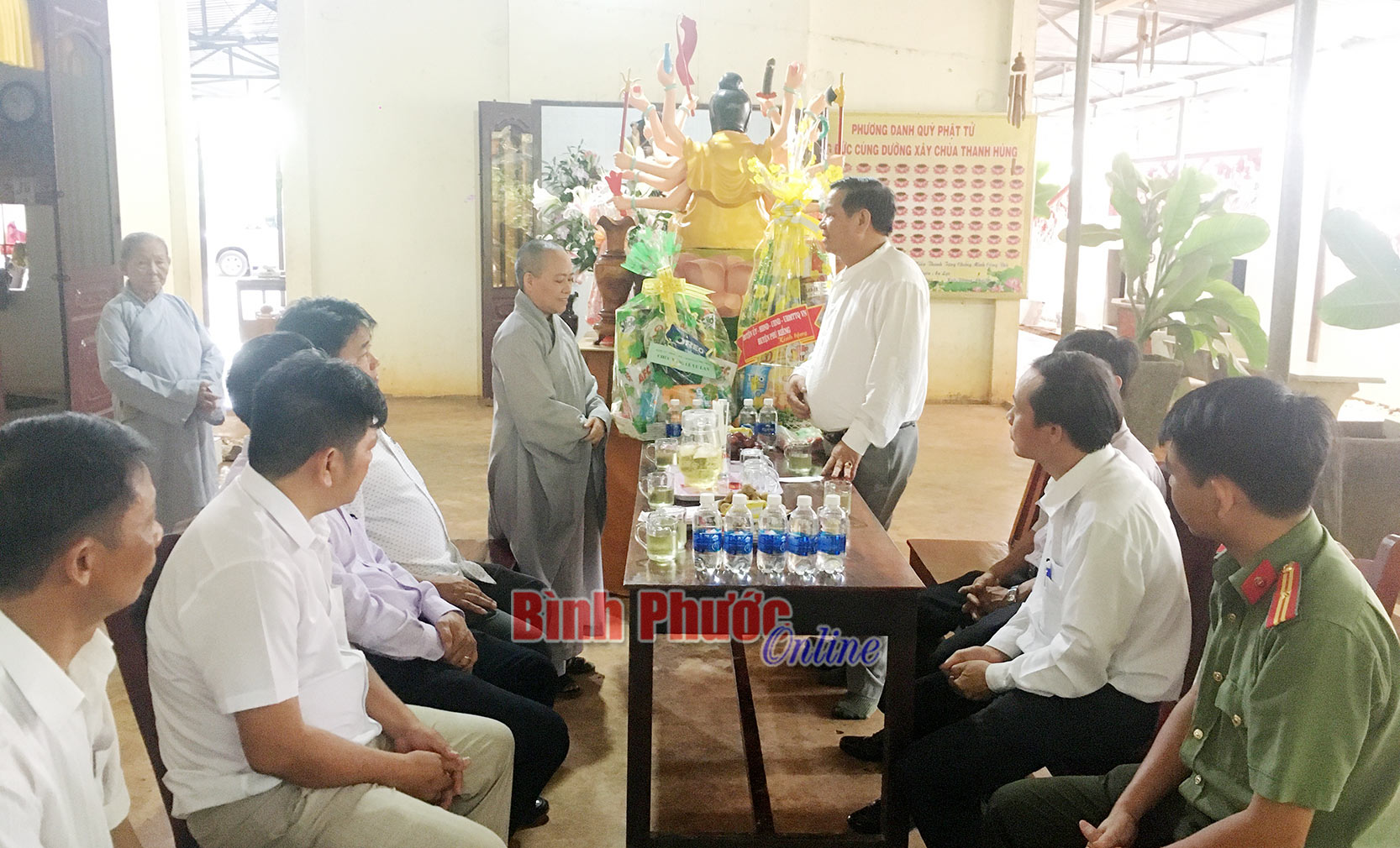 Lãnh đạo huyện thăm và tặng quà chùa Viên Thành, xã Phú RiềngBí thư Huyện ủy mong các chùa tiếp tục phối hợp tốt với cấp ủy, chính quyền địa phương tuyên truyền, vân động, giáo dục các tăng ni, phật tử thực hiện tốt chủ trương, đường lối của Đảng, chính sách pháp luật Nhà nước, làm tốt công tác đại đoàn kết toàn dân tộc.