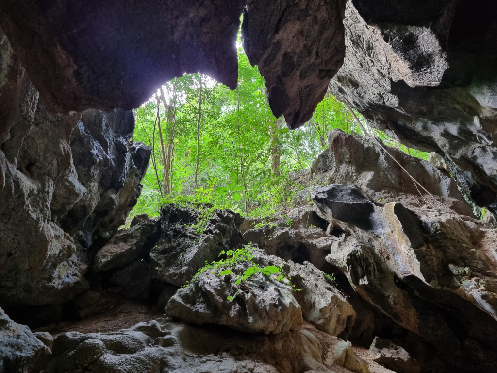 Hang Dơi khá rộng nhưng hơi tối, có lẽ vì thế mới thích hợp với dơi chăng(?) Chúng tôi phải dùng đèn pin để quan sát hang. Nơi đây cũng có những nhũ đá lấp lánh khá đẹp. Ở cuối một ngách nhỏ phải cúi người mới chui qua được, chúng tôi còn phát hiện một hốc nước ngọt khá sâu.