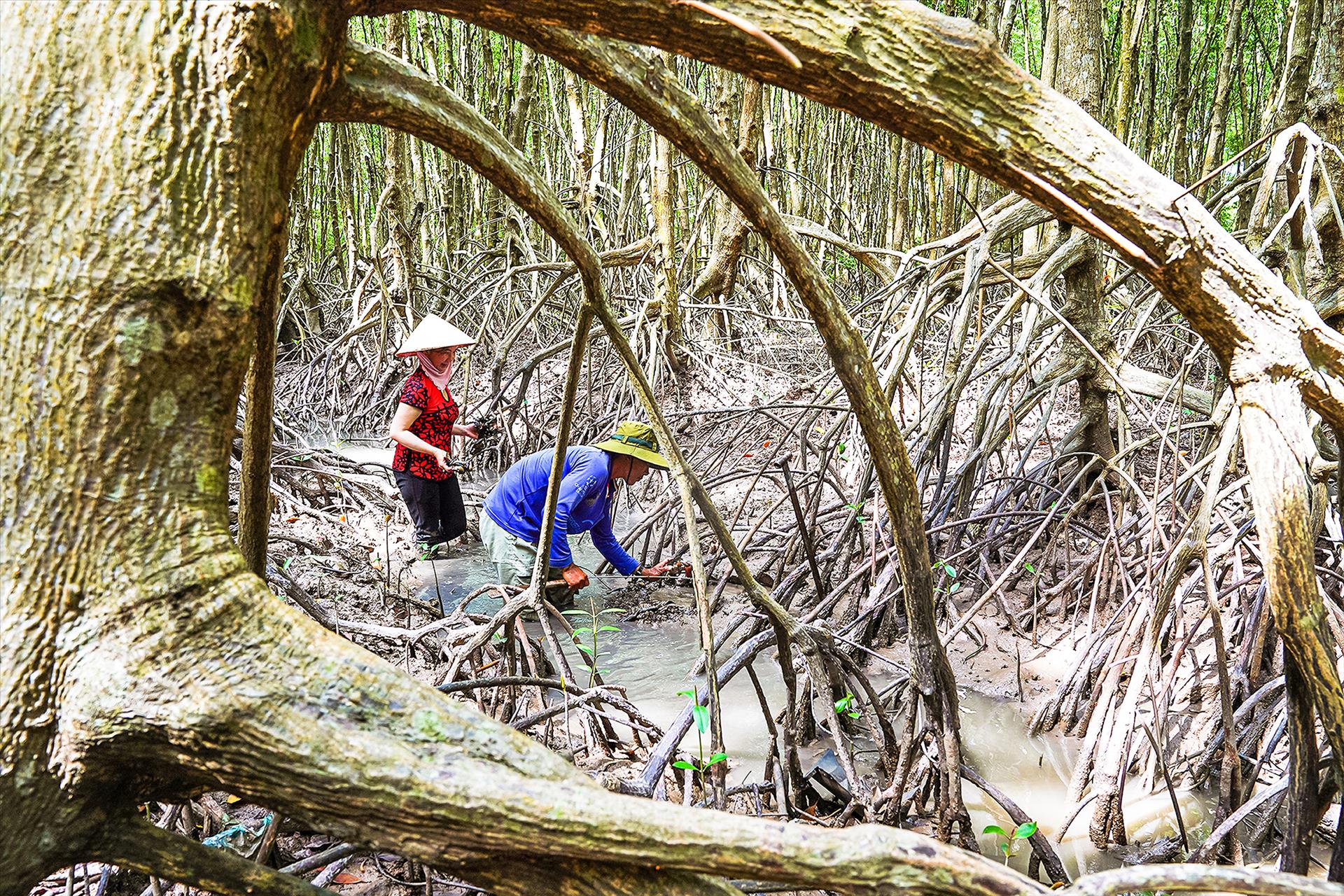 Đến Mũi Cà Mau, du khách có thể đi lại bằng thuyền máy, len lỏi giữa những cánh rừng ngập mặn để ngắm hệ sinh thái tuyệt vời, tham quan mô hình làng rừng thời chiến được gìn giữ một cách cẩn thận để hiểu thêm về đời sống của quân và dân miền Tây Nam Bộ thời kì kháng chiến chống Mỹ cứu nước và trải nghiệm đời sống đậm chất sông nước miền Tây như lội sông bắt ba khía, câu cá, bắt cua, thòi lòi cùng những trò chơi dân gian luôn thu hút nhiều du khách tham gia.