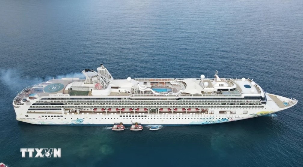 Tàu biển Resorts World One đưa hơn 2.000 khách quốc tế trải nghiệm Côn Đảo. (Ảnh: Huỳnh Sơn//TTXVN)