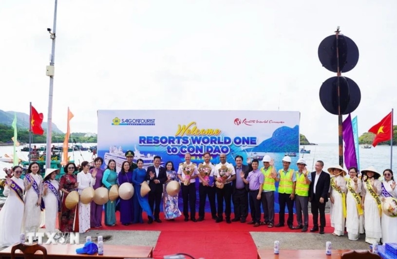 Tại cảng Bến Đầm, Ủy ban Nhân dân huyện Côn Đảo, Ban Quản lý Khu Du lịch Quốc gia Côn Đảo phối hợp với Công ty Dịch vụ Lữ hành Saigontourist long trọng đón tiếp hãng tàu và các vị khách quốc tế từ tàu Resorts World One đến thăm Côn Đảo.