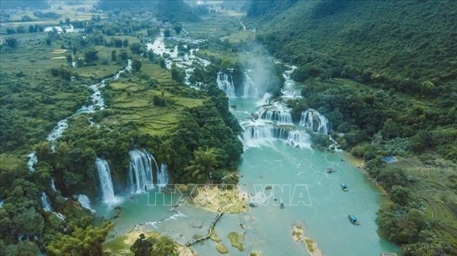 Thác Bản Giốc gồm nhiều các tầng thác nhỏ gộp lại (Công viên địa chất toàn cầu UNESCO Non nước Cao Bằng). Ảnh: Trọng Đạt/TTXVN
