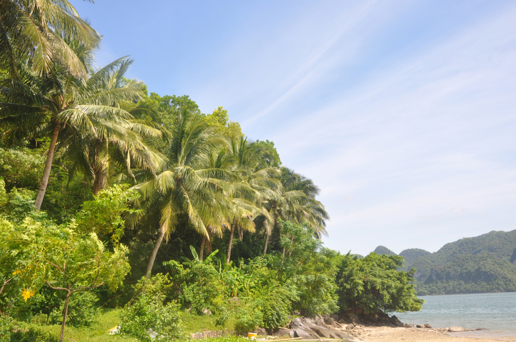 Quá trình khảo sát, đoàn cũng tới đảo Lờm Bò - khu vực có vùng nước giáp ranh với vịnh Lan Hạ, Cát Bà của TP Hải Phòng. Chào đón chúng tôi là hàng dừa chạy dài toả bóng trên đảo. Ngược lại với phong cảnh hoang sơ của đảo là khung cảnh nhộn nhịp trên biển thu vào tầm mắt với vô số con tàu du lịch hoành tráng, thiết kế sang trọng của cả phía Quảng Ninh và Hải Phòng cùng chạy qua khiến các thành viên trong đoàn phải xuýt xoa vì quá đẹp...