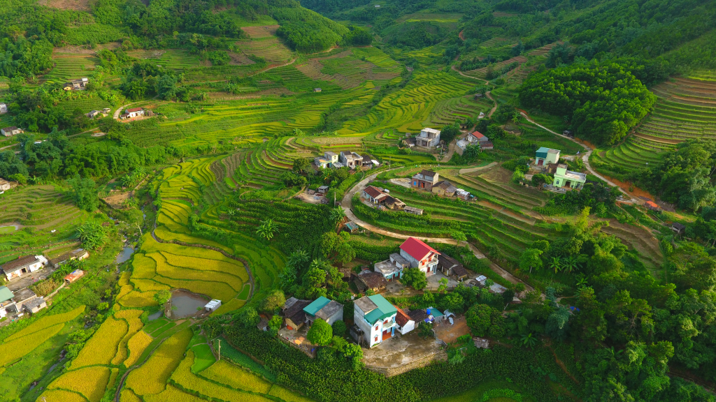 Ruộng bậc thang ở Tiên Yên được hình thành từ nhiều đời nay. Với diện tích cấy lúa lên tới trên 500ha cùng với kinh nghiệm canh tác, người dân vùng cao Tiên Yên đã cải tạo các vạt đất canh tác lúa thành các chân ruộng bậc thang, tạo thành nét đẹp rất đặc trưng ở các xã Đại Thành, Đại Dực... Đến với mảnh đất vùng Đông Bắc tỉnh Quảng Ninh những ngày cuối tháng 10, du khách sẽ được thấy tầng tầng lớp lớp ruộng bậc thang uốn lượn và trải dài từ trên đỉnh đồi xuống đến tận thung lũng. Màu vàng của lúa chín, màu trắng của mây, màu xanh của cây rừng, tất cả hòa quyện lại tạo nên một bức tranh sinh động. Và có lẽ chẳng gì bằng khi giữa tiết thu với cái nắng vàng hanh hao như rót mật được hòa mình vào thiên nhiên, ngắm những thửa ruộng bậc thang vàng óng và nghe điệu soóng cọ mênh mang của người Sán Chỉ nơi vùng cao.