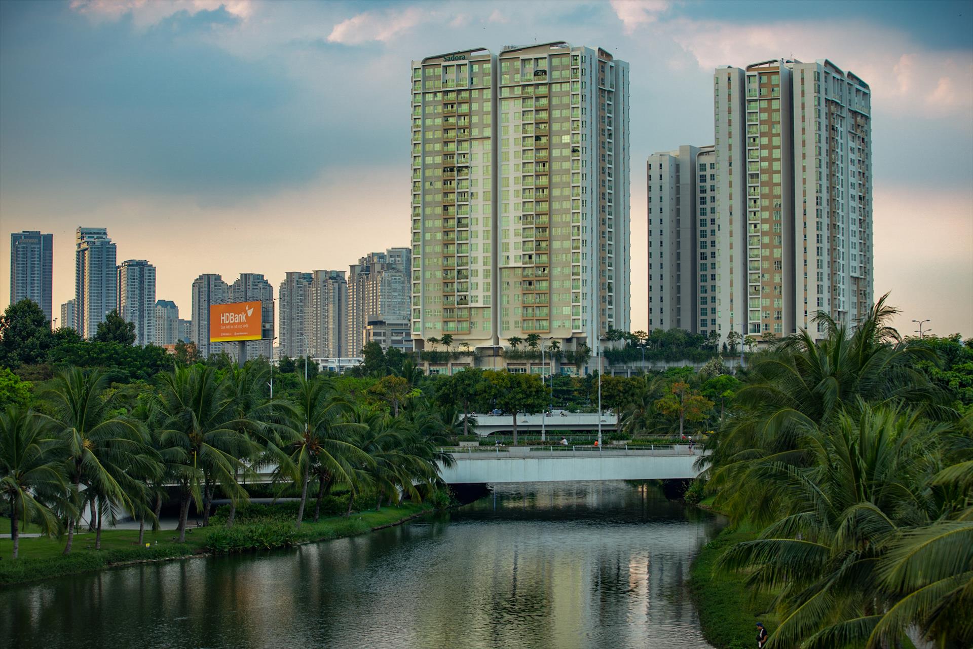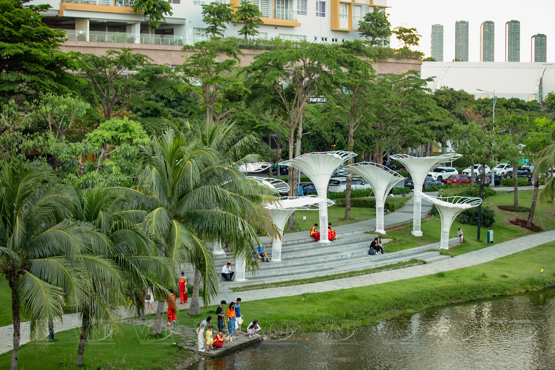 Người dân vui chơi tại khuôn viên khu đô thị bên sông Sài Gòn. Ảnh: Nguyễn Luân/Báo ảnh việt Nam