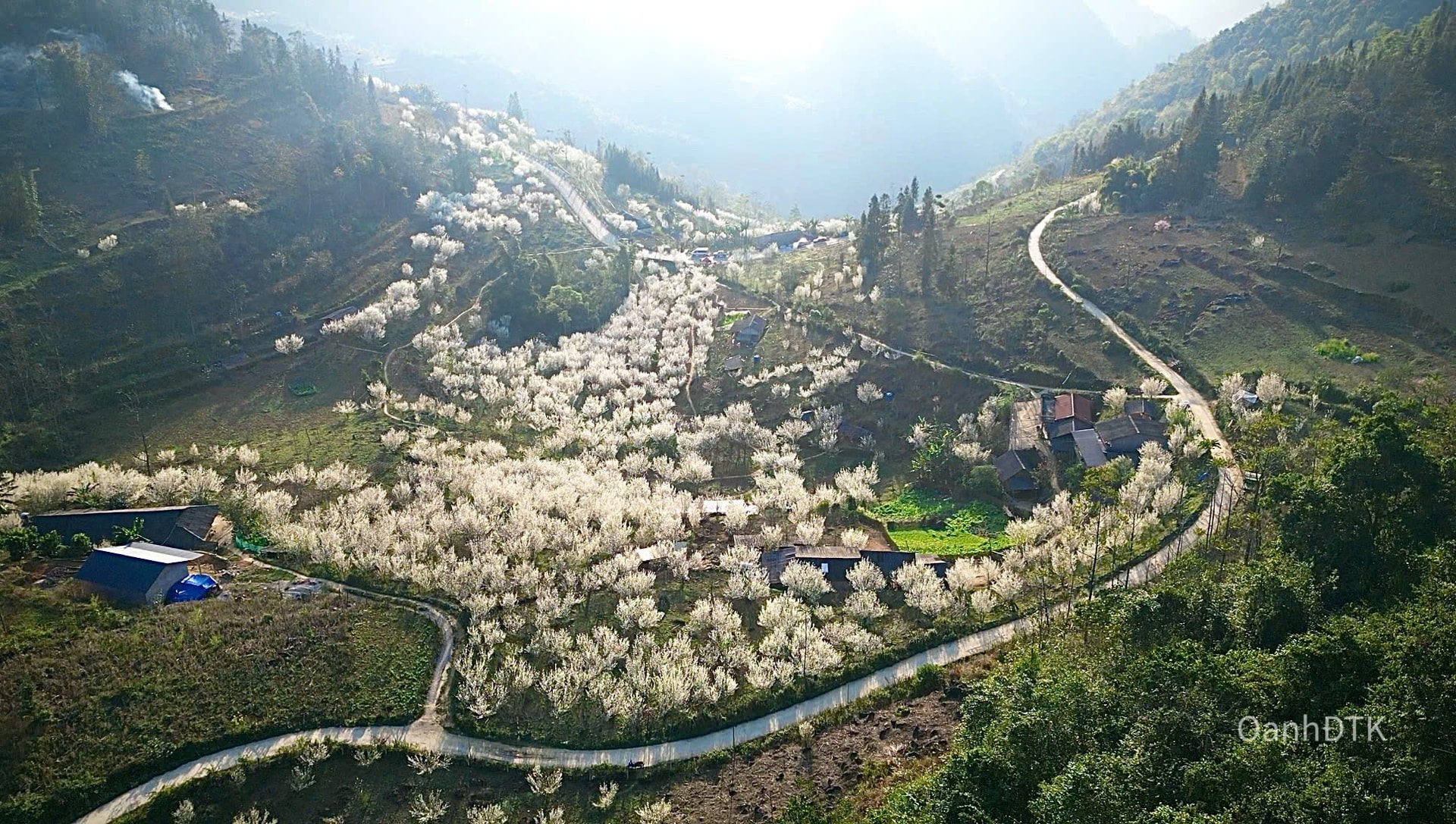 Hoa mận ở cao nguyên Bắc Hà nở từ tháng 1 tới giữa tháng 3, phủ trắng các bản làng H'Mông, tạo khung cảnh mùa xuân đẹp nao lòng.