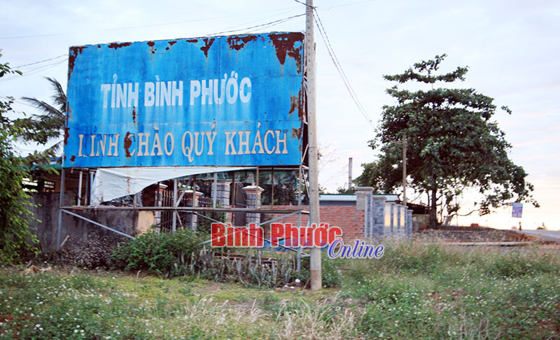 BP - Tấm pa-nô “Tỉnh Bình Phước kính chào quý khách” 2 mặt, bằng tôn trên khung sắt kiên cố; chiều rộng khoảng 4m, cao gần 5m trên QL14, đoạn thuộc xã Phú Sơn, huyện Bù Đăng, giáp ranh tỉnh Đắk Nông đã quá cũ. Sơn màu pa-nô bong tróc, tôn, khung sắt hoen rỉ, lem nhem khó đọc chữ, gây phản cảm, bức xúc cho người dân và du khách (ảnh).