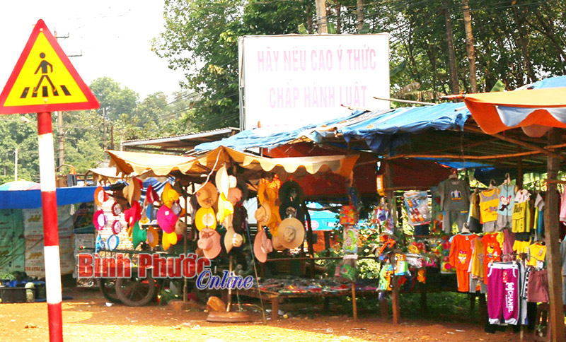 BP - Tấm pa-nô: “Hãy nêu cao ý thức chấp hành Luật Giao thông đường bộ” 2 mặt trên quốc lộ 13, tại ngã 3 Liên Ngành, thuộc xã Lộc Tấn, huyện Lộc Ninh bị dãy hàng quán quần áo, tư trang che khuất khó đọc chữ, gây bức xúc cho người dân và du khách (ảnh).