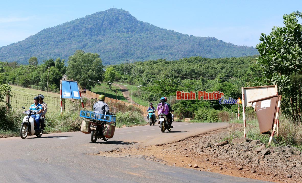 BP - Trên đường ĐT741, đoạn qua đập thủy điện Thác Mơ, thị xã Phước Long, nhiều biển báo giao thông bị nghiêng lệch, xiêu vẹo, cũ nát khiến người tham gia giao thông khó quan sát và làm xấu mỹ quan nơi đây (ảnh).