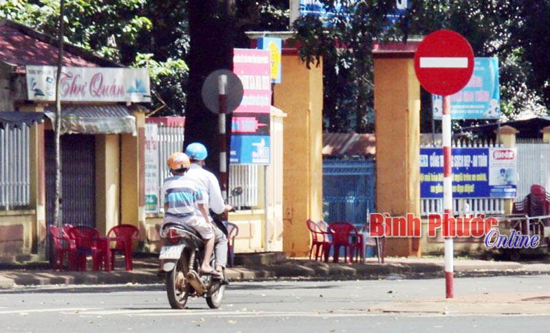 BP - Tại ngã ba giao nhau giữa đường Nguyễn Huệ và Lê Quý Đôn, thị xã Bình Long, mặc dù có biển “Cấm đi ngược chiều” nhưng không ít người dân vẫn ngang nhiên vi phạm (ảnh).