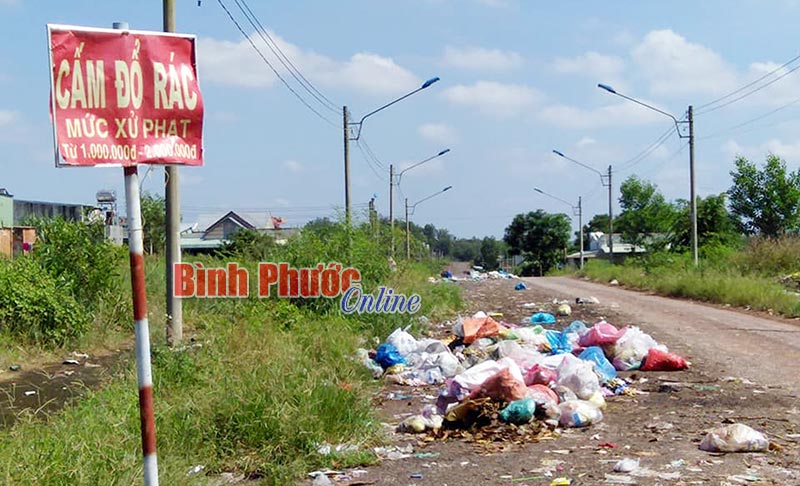 BP - Trên đường Hùng Vương đoạn thuộc khu phố Tân An, thị trấn Tân Phú (Đồng Phú), khu vực gần chợ Đồng Phú có điểm tập kết rác tự phát của các tiểu thương và người dân lân cận, bốc mùi hôi thối, gây ô nhiễm môi trường và mất mỹ quan đường phố. Mặc dù các cấp chính quyền có gắn biển “Cấm đổ rác mức xử phạt từ 1 triệu đến 2 triệu đồng”, nhưng rác vẫn tràn lan ngay dưới chân biển cấm. Tình trạng này diễn ra thường xuyên và kéo dài hằng tháng nay. Rất mong UBND thị trấn Tân Phú sớm có giải pháp xử lý nhằm đảm bảo không khí trong lành cho người dân.