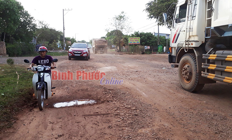 BP - Trong ảnh là những “ổ voi”, “ổ trâu” trên đường nối Tân Khai - Minh Lập, đoạn qua Nhà thờ Giáo xứ Tân Khai, xã Tân Khai (Hớn Quản). Do đường xuống cấp nghiêm trọng nên việc lưu thông của người dân rất vất vả, vì nắng bụi bay mù mịt, mưa lầy lội. Rất mong ngành chức năng sớm tu sửa, nâng cấp đoạn đường để cuộc sống người dân bớt khổ.
