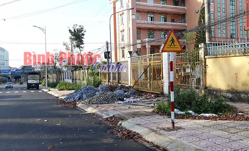 Rác và cỏ mọc um tùm trong các bồn cây được trồng trên vỉa hè tuyến đường nối từ QL 14 đến Trần Hưng Đạo thuộc thị xã Đồng Xoài (bên hông hàng rào Bưu điện tỉnh). Tình trạng này gây mất mỹ quan khi mà thị xã Đồng Xoài đang thực hiện các hoạt động chỉnh trang đô thị chào mừng thành lập thành phố Đồng Xoài. Ảnh chụp ngày 12-11-2018.