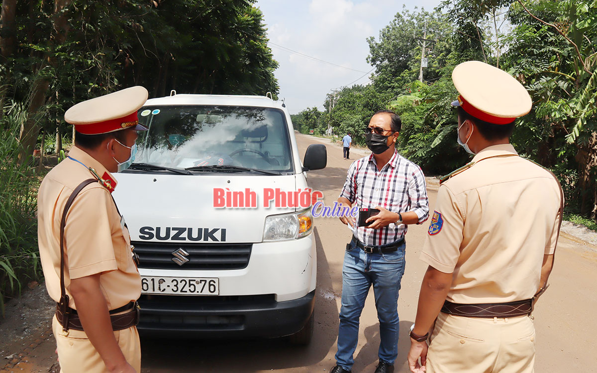 Tại đây các phương tiện đều được các chiến sĩ thuộc tổ kiểm soát giao thông, Công an thành phố Đồng Xoài kiểm tra. Do khu vực này không có chốt kiểm soát phòng, chống dịch Covid-19, nên các tài xế đều được lực lượng cảnh sát giao thông tại đây hướng dẫn quay đầu xe đi về lại chốt kiểm soát để khai báo y tế và thực hiện các biện pháp phòng chống dịch trước khi vào hoặc đi qua tỉnh Bình Phước. Hầu hết các tài xế, người điều khiển phương tiện sau khi được giải thích, hướng dẫn đều đã chấp hành.