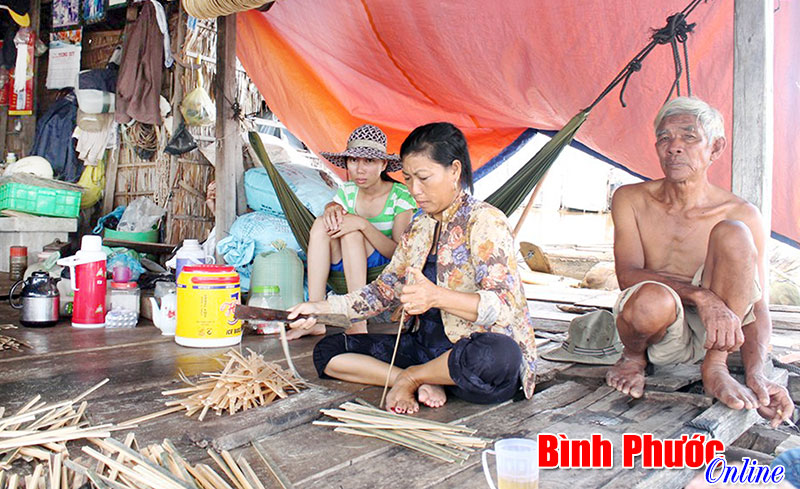 Để gặp được ông Nguyễn Văn Cho (70 tuổi), chúng tôi phải đi nhờ ghe của người dân đánh bắt cá. Nơi cư ngụ của ông Cho chỉ là chiếc thuyền cũ có vách nứa, lợp mái tôn để che mưa nắng. Thấy có khách lạ, ông Cho ngạc nhiên vì chưa bao giờ có ai đến tìm ông ngoài những người bạn chài giữa biển nước mênh mông. Ông Cho kể: “Trước đây, mưu sinh bên Campuchia, cuộc sống khó khăn nên gia đình tôi về lòng hồ thủy điện Cần đơn làm nghề đánh bắt cá. Hơn 10 năm làm quần quật nhưng vẫn không mua được mảnh đất cắm dùi”. Trên chiếc thuyền cũ, có đến ba thế hệ cùng sinh sống. Ông Cho có 10 người con, một nửa trong số đó hiện cùng cha bám lòng hồ. Còn lại lên bờ tỏa khắp nơi kiếm sống.