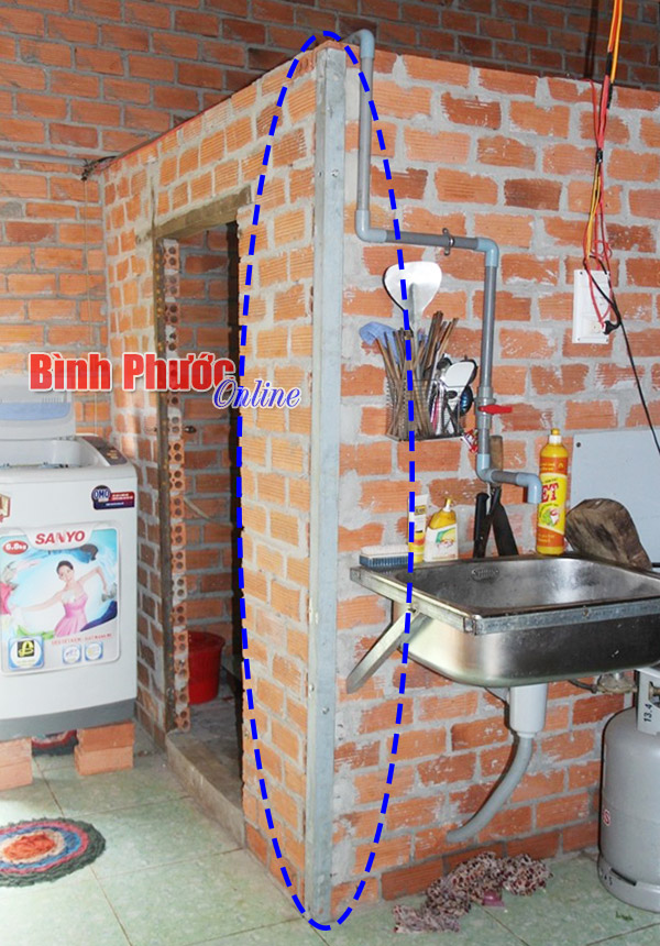 Thanh sắt không dùng đến, nhưng gia đình chị Hiền phải mua của điện lực Bình Long đang dùng để… chống tường