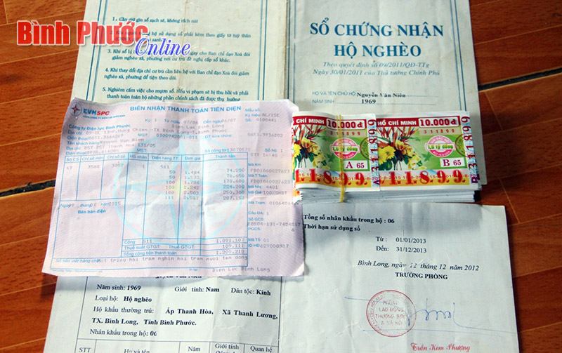 Nhà nghèo, sống bằng nghề bán vé số nhưng tháng 7-2015 gia đình anh Nguyễn Văn Niên, ngụ khu phố Thanh Hòa, xã Thanh Lương phải trả 1,2 triệu đồng