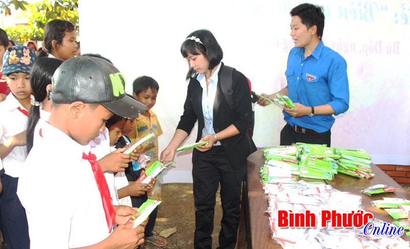 Ngày 23-1, Đoàn khối cơ quan dân chính đảng phối hợp với Đoàn khối các cơ quan tỉnh Bình Dương tổ chức chiến dịch tình nguyện “xuân biên giới” tại xã Hưng Phước (Bù Đốp). Trong chuyến tình nguyện lần này, đoàn đã khám, phát thuốc miễn phí cho 250 người dân; tặng 80 phần quà (từ 200 đến 500 ngàn đòng/suất) cho gia đình chính sách, các hộ nghèo, hộ đồng bào dân tộc thiểu số; 10 suất học bổng (500 ngàn đồng/suất) và 2.000 cuốn tập cho học sinh nghèo hiếu học; 5 xe lăn cho các đối tượng tàn tật và tổ chức phát quang bụi rậm tại một số tuyến đường trên địa bàn xã Hưng Phước (Bù Đốp) với tổng kinh phí gần 60 triệu đồng. Ngoài ra, đoàn còn thăm và chúc tết cán bộ, chiến sĩ tại Đồn biên phòng cửa khẩu Hoàng Diệu và Chi cục Hải quan cửa khẩu Hoàng Diệu.