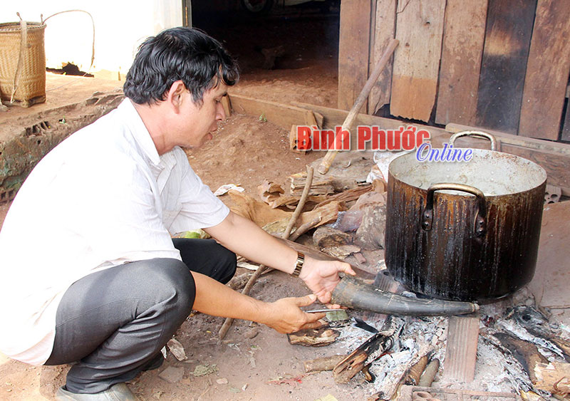 Trước khi chế tác, sừng trâu được hơ trên lửa để mềm, dễ chuốt gọt.