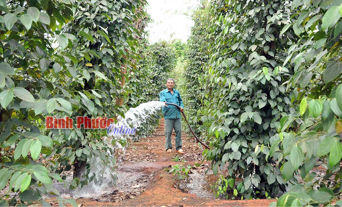 Có khoảng 500 nọc tiêu nhưng do xa đập thủy lợi, nguồn nước hạn chế nên gia đình bà Dương Thị Tâm ở cùng ấp 6A luôn cảm thấy lo lắng, nhất là khi mùa khô đến. Bà Tâm chia sẻ: “Gia đình tôi sinh sống tại đây đã hàng chục năm. Vào mùa khô, nước chỉ đủ phục vụ sinh hoạt và chăn nuôi. Để khắc phục tình trạng này, năm 2015, tôi chi 6 triệu đồng mua vật dụng về tự thiết kế hệ thống tưới nước phun sương tự động. Trước đây, gia đình cũng trồng tiêu nhưng do thiếu nước nên bị chết dần. Khi phá bỏ vườn cũ để trồng lại giống tiêu mới, gia đình đã làm hệ thống tưới nước tiết kiệm. Ưu điểm của hệ thống tưới phun sương là tiết kiệm nước và công lao động, nhất là trong thời điểm cây tiêu mất mùa, rớt giá”.