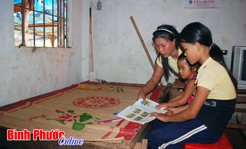 Người dân Thạch Màng tranh thủ cho con em học bài lúc trời còn sáng