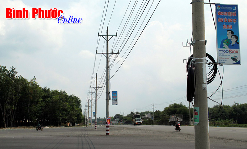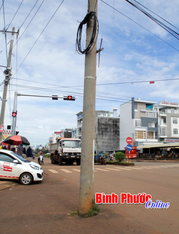 BP - Những năm gần đây, với sự góp sức của các thành phần kinh tế, tốc độ phát triển cơ sở hạ tầng trên địa bàn tỉnh khá nhanh chóng. Đặc biệt là các công trình về điện, đường... Tuy nhiên, vì nhiều lý do nên một số công trình đã phát sinh những bất cập. Điển hình là trường hợp đường đi trước, điện đi sau. Dẫn đến cảnh đường đã xong nhưng cột điện vẫn còn đứng trơ trên đường, gây cản trở và là nỗi lo tai nạn luôn thường trực với người tham gia giao thông. Đặc biệt nguy hiểm hơn khi ban đêm, nhiều cột điện không có đèn chiếu sáng, rào chắn hay biển cảnh báo.
