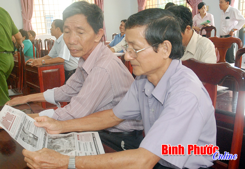 Ông Trần Văn Soái đang đọc Báo Bình Phước
