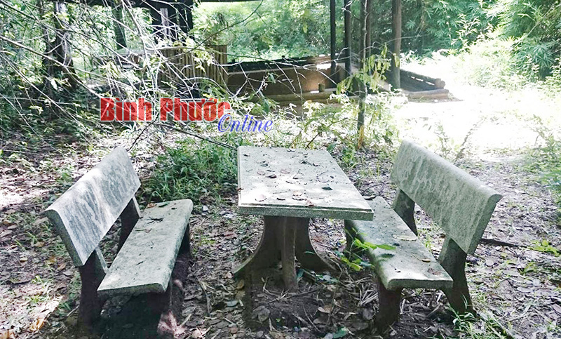 Khu nhà làm việc của đồng chí Lê Văn Tưởng, bộ ghế đá đã quá lâu không được quét dọn