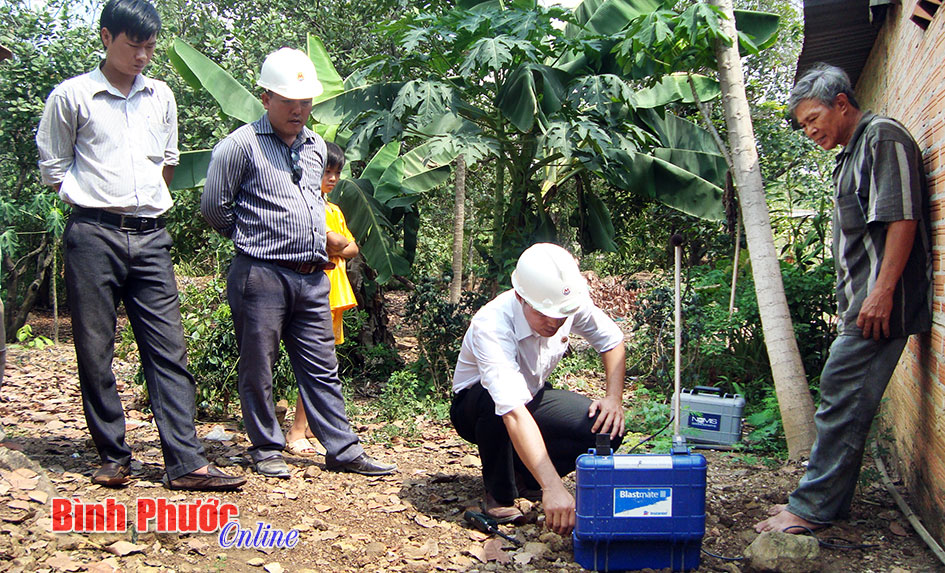 Nhằm làm rõ nội dung báo nêu, ngày 18-3-2015, Sở Công thương đã tổ chức đoàn kiểm tra liên ngành, gồm các sở, ngành liên quan cùng 3 công ty khai thác đá và các hộ dân sống gần khu vực nổ mìn đo đạc, xác định khoảng cách và kiểm tra hiện trạng các công trình, nhà dân gần khu vực nổ mìn. Theo Công văn số 558/SCT-KTATMT, ngày 5-5-2015, báo cáo giám sát ảnh hưởng nổ mìn tại khu vực gần các hộ dân ở ấp Núi Gió của Sở Công thương, kết quả kiểm tra bằng máy định vị cầm tay GPS đã đo được khoảng cách từ trung tâm bãi nổ của các công ty đến nhà các hộ dân gần khu vực nổ mìn nhất, như sau: Từ vị trí trung tâm nổ mìn của mỏ đá Công ty cổ phần Đầu tư xây dựng Bình Long đến nhà các ông: Mai Hồng Cẩn là 549m, Phạm Văn Hùng 628m và Nguyễn Thành Sơn 619m. Từ vị trí trung tâm nổ mìn của mỏ đá Công ty TNHH MTV xây dựng Bình Phước đến nhà các ông: Mai Hồng Cẩn là 1.106m, Phạm Văn Hùng 1.117m và Nguyễn Thành Sơn 1.180m. Từ vị trí trung tâm nổ mìn của mỏ đá chi nhánh Công ty cổ phần Hóa An đến nhà các ông: Mai Hồng Cẩn là 670m, Phạm Văn Hùng 779m và Nguyễn Thành Sơn 783m.