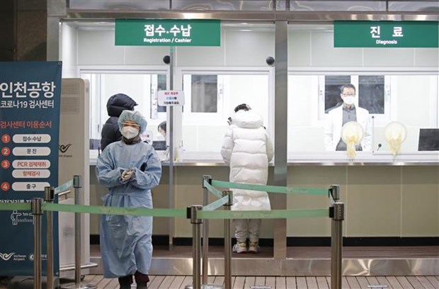 Hành khách đăng ký xét nghiệm COVID-19 tại một trạm xét nghiệm ở sân bay quốc tế Incheon (Hàn Quốc), ngày 8-1-2021
