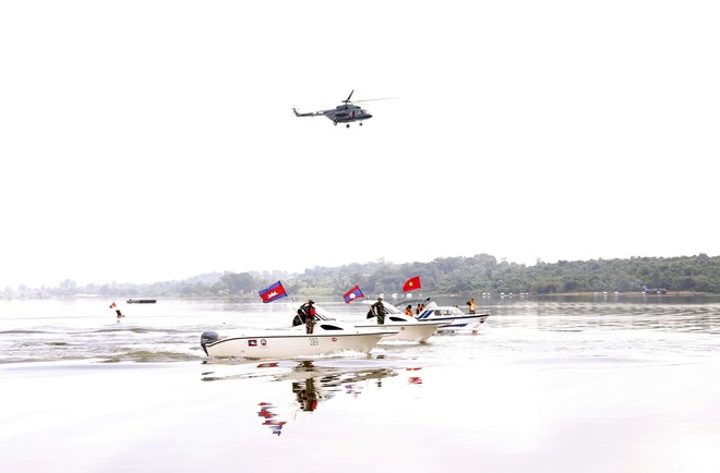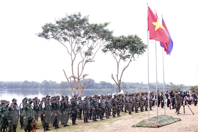 Đây là lần diễn tập đầu tiên được tổ chức theo thoả thuận của các Bộ trưởng tại Hội nghị Bộ trưởng Quốc phòng Campuchia-Lào-Việt Nam diễn ra năm 2019 tại Hà Nội. (Ảnh: Phạm Kiên/TTXVN)