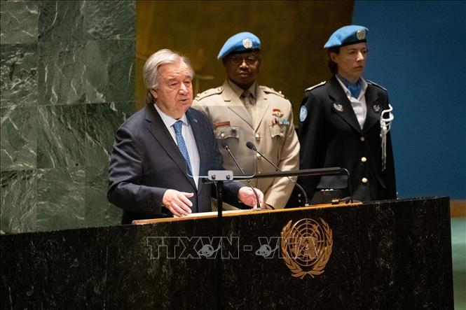 Tổng thư ký LHQ Antonio Guterres phát biểu tại phiên họp ở trụ sở LHQ, New York, Mỹ, ngày 25-5-2023. Ảnh: THX/TTXVN