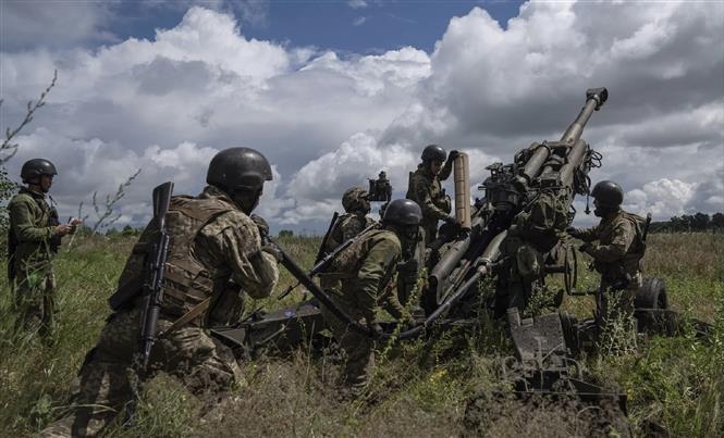 Binh sĩ Ukraine sử dụng lựu pháo M777 của Mỹ trong cuộc xung đột với lực lượng Nga ở vùng Kharkiv. Ảnh: AP/TTXVN