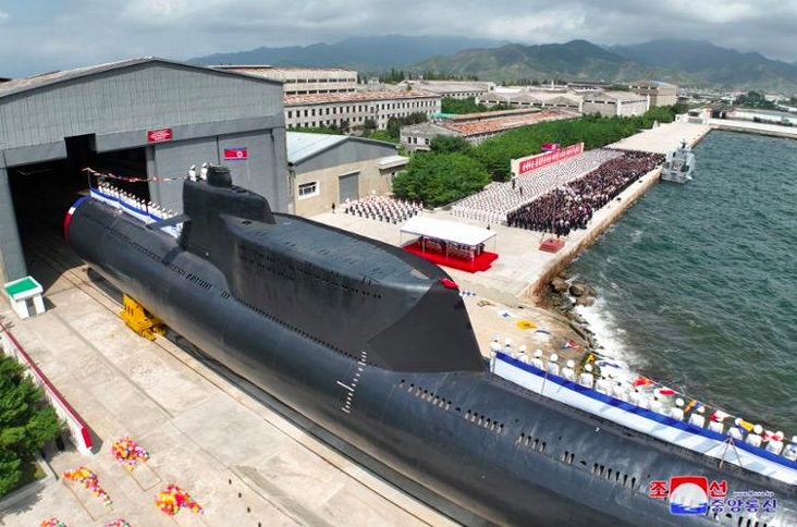 Tàu ngầm tấn công hạt nhân chiến thuật mới được chế tạo tại Xưởng đóng tàu Sinpo ở tỉnh Hamgyong Nam, Triều Tiên, ngày 6-9-2023. Ảnh: KCNA