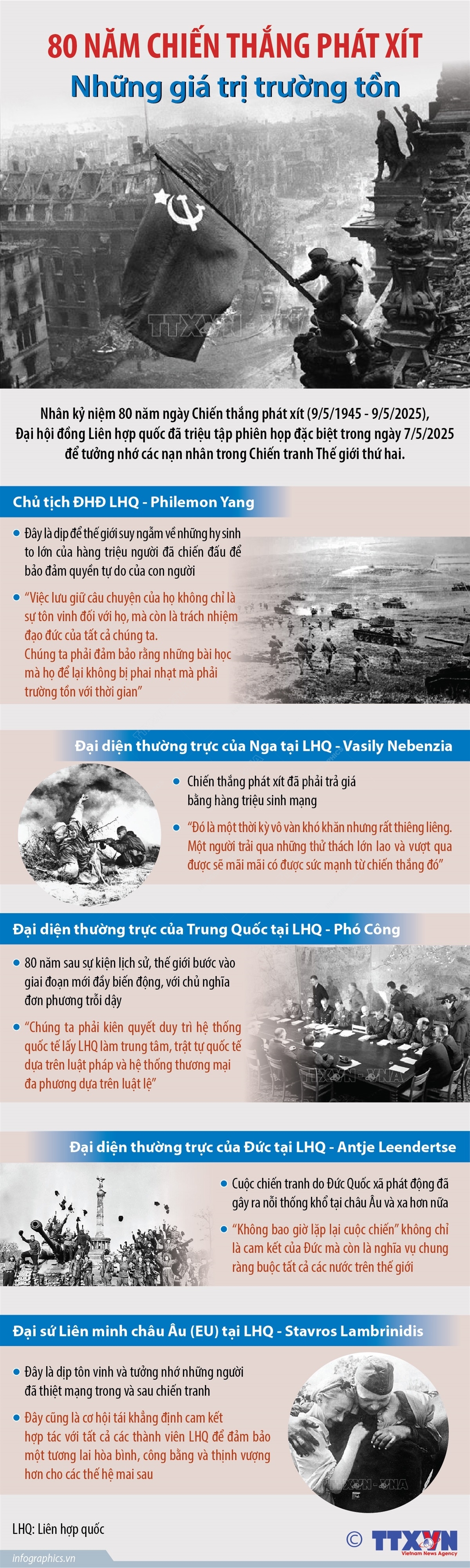 Phát biểu tại cuộc họp, Chủ tịch Đại hội đồng Liên hợp quốc Philemon Yang nhấn mạnh, đây là dịp để thế giới suy ngẫm về những hy sinh to lớn của hàng triệu người đã chiến đấu để bảo đảm quyền tự do của con người. Việc lưu giữ câu chuyện của họ không chỉ là sự tôn vinh đối với họ, mà còn là trách nhiệm đạo đức của tất cả chúng ta. Chúng ta phải đảm bảo rằng những bài học mà họ để lại không bị phai nhạt mà phải trường tồn với thời gian.